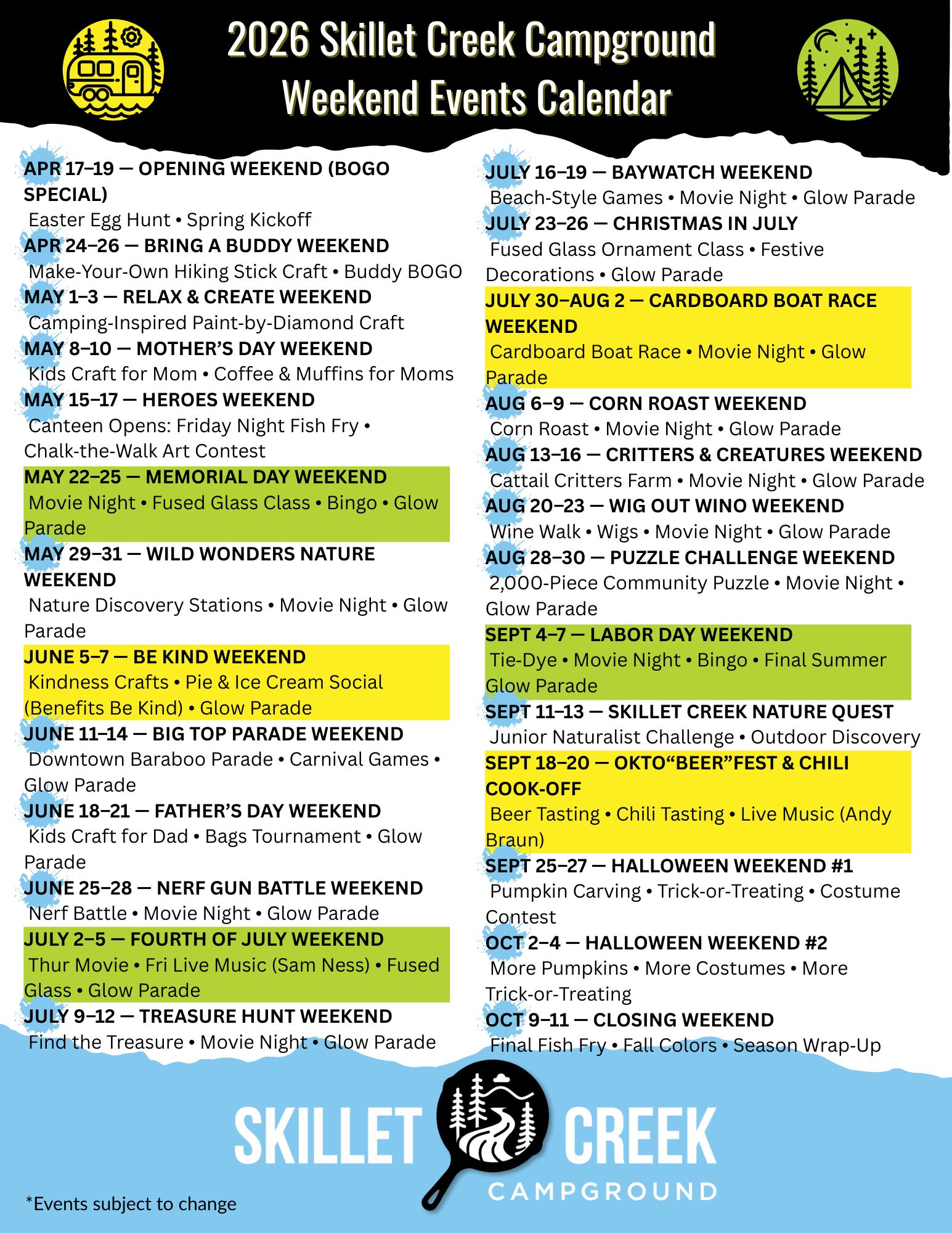 We’re excited to officially release the 2026 Skillet Creek Campground Weekend Events Calendar, and [...]